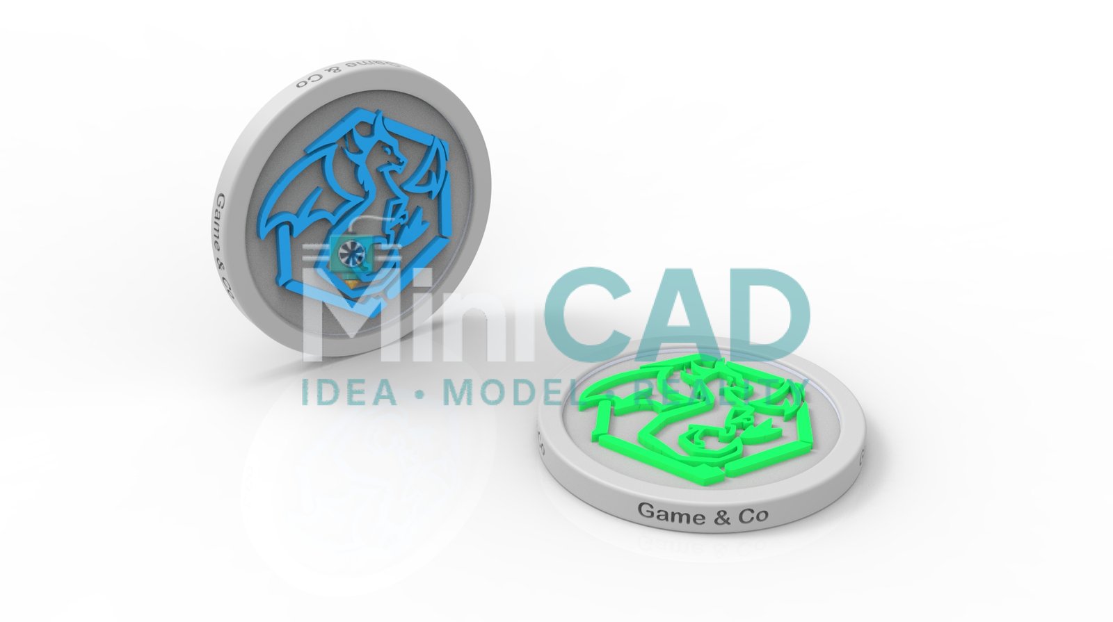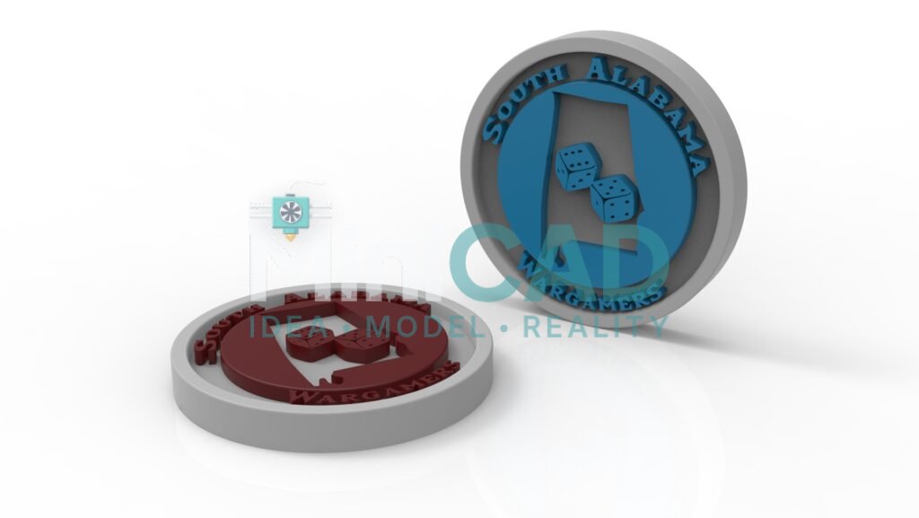 stl file design service — multi-color 3D printed NFC coin with embedded smart tag SolidWorks